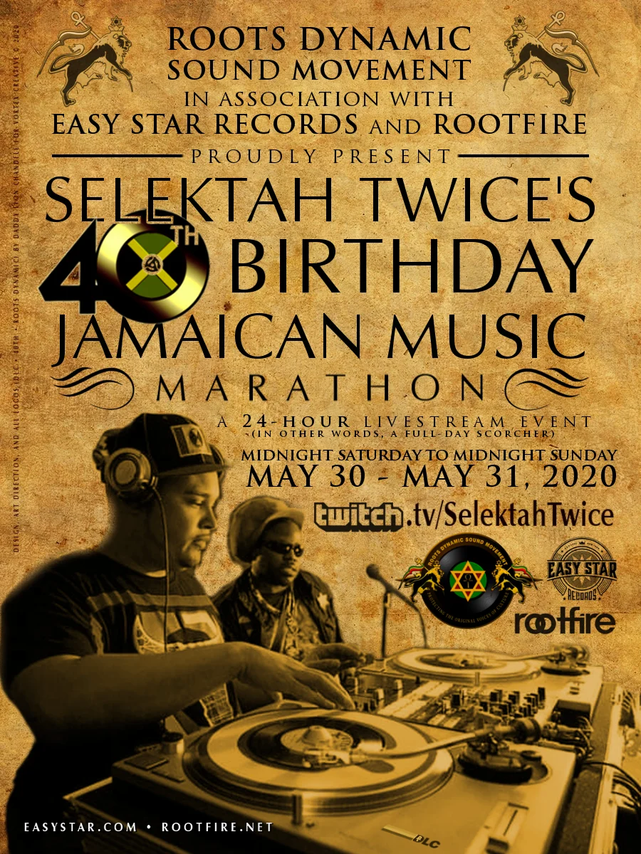 In commemoration of 60 years of Jamaican Music, and to celebrate his 40th Birthday during this pandemic, Selektah Twice will be behind the turntables LIVE on Twitch.tv/selektahtwice for 24 consecutive hours starting midnight ET on Saturday, May 30, playing every style of Reggae from its inception – a personal bucket list accomplishment he has always wanted to attempt. A milestone challenge for his milestone birthday during an ideal and unique time to make it a reality. We’ll also be streaming on EasyStar.com – check back TONIGHT and we’ll have the livestream embedded right here!12am – 2am – Ska (1960-66)